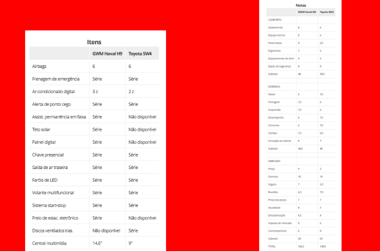 Para apimentar ainda mais o duelo, o Haval H9 já conseguiu superar o SW4 em volume mensal de emplacamentos recentemente, algo simbólico diante da força histórica da Toyota no segmento. Ainda assim, o modelo japonês segue líder no acumulado anual.