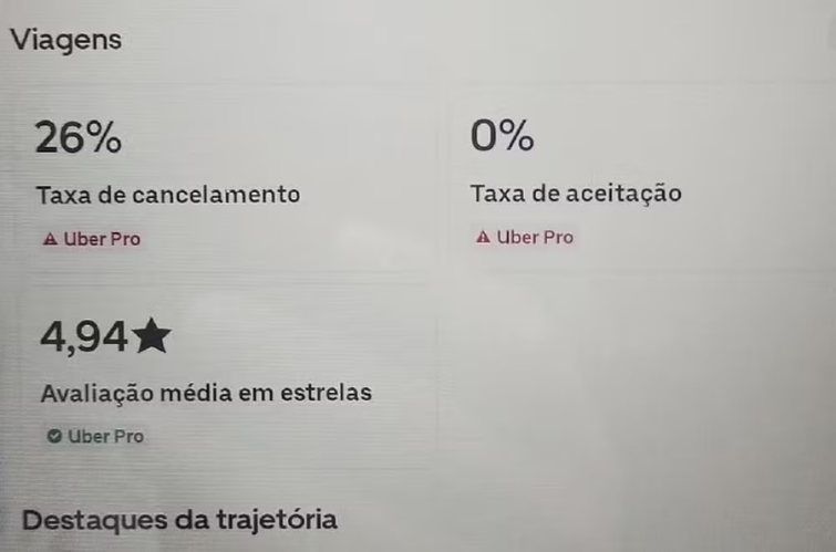 Motorista de aplicativo compartilha sua taxa de aceitação baixa em grupo no Facebook — Foto: Reprodução/Facebook