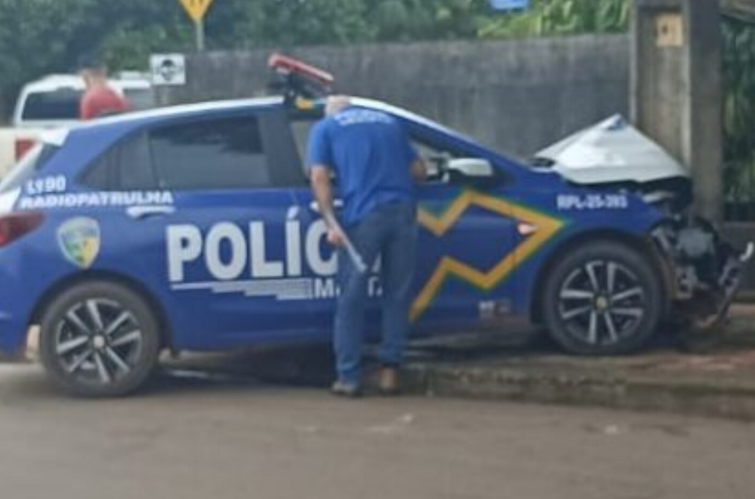No momento em que a viatura tentou interceptar o motociclista, o motorista perdeu o controle da direção, resultando em uma colisão violenta contra um poste. Com o impacto, a parte frontal do veículo ficou completamente destruída.