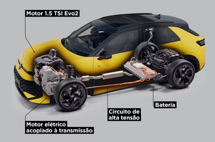 Na versão híbrida leve, o conjunto entrega cerca de 150 cv e 25,5 kgfm de torque; já na híbrida plena, os números sobem para 170 cv e 31,6 kgfm.