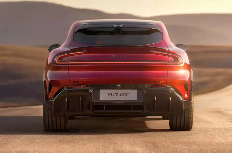 O YU7 GT chama atenção pelo visual com linhas arredondadas e proporções que remetem a modelos da Porsche. Na dianteira, destacam-se os faróis geométricos, entradas de ar em acabamento escurecido e o capô com vincos marcantes.