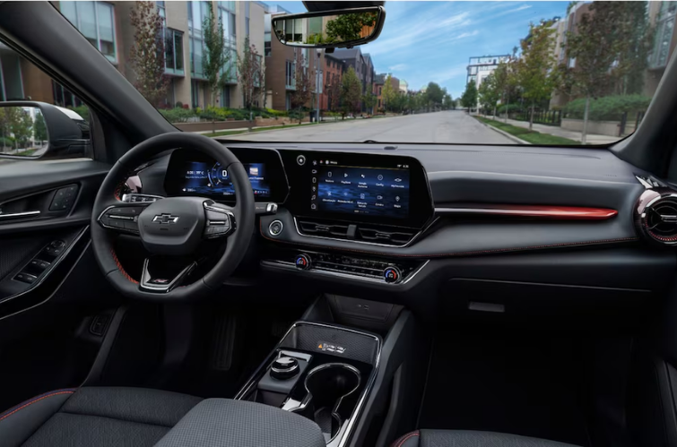 O Equinox oferece teto solar panorâmico, acabamento interno premium e amplo espaço para os ocupantes. A versão Activ aposta em elegância, com interior nas cores preta e caramelo, câmeras de visão 360° e retrovisor com projeção em vídeo. Já a RS valoriza a esportividade, trazendo rodas de 20” e detalhes exclusivos em vermelho.