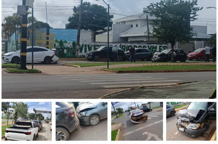 De acordo com informações apuradas no local, o primeiro acidente ocorreu na pista com sentido à BR-364 e aos bairros da cidade. Quatro veículos se envolveram na colisão em sequência. A dinâmica preliminar indica que o automóvel que seguia à frente reduziu a velocidade ao se aproximar do semáforo, e os condutores que vinham logo atrás não conseguiram frear a tempo, provocando o engavetamento.
