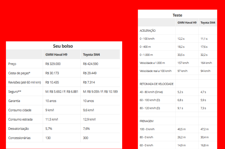 GWM Haval H9 x Toyota SW4: desempenho, consumo e frenagem
