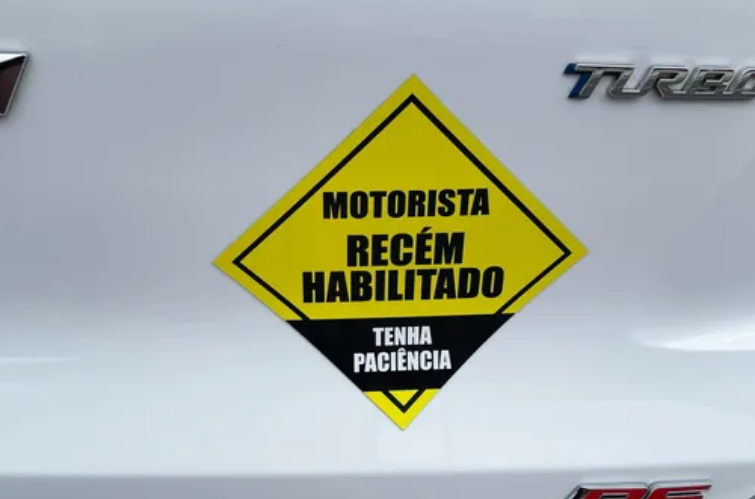 Sem regulamentação oficial, muitos recém-habilitados no Brasil recorrem a soluções improvisadas, colando adesivos e mensagens como “motorista iniciante” ou “tenha paciência” nos carros. Esses avisos: