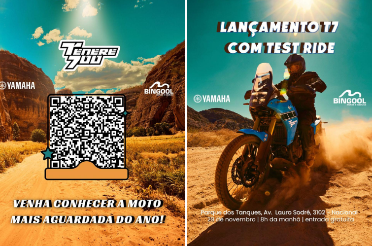 Além da apresentação oficial, os participantes poderão realizar o Test Ride da Ténéré 700, vivendo na prática a experiência de pilotar a trail mais comentada no mercado nacional. Os interessados devem realizar a inscrição antecipada por meio do QR Code disponível nas peças de divulgação.